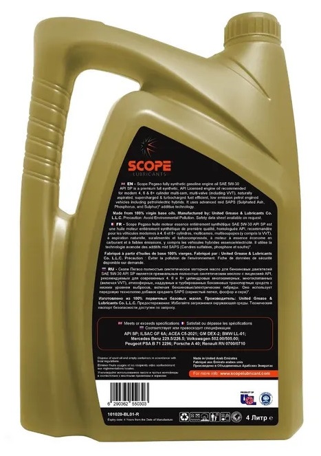 Масло моторное SCOPE Pegaso 10000 GEO SAE 5W30 SP 4л в Москве