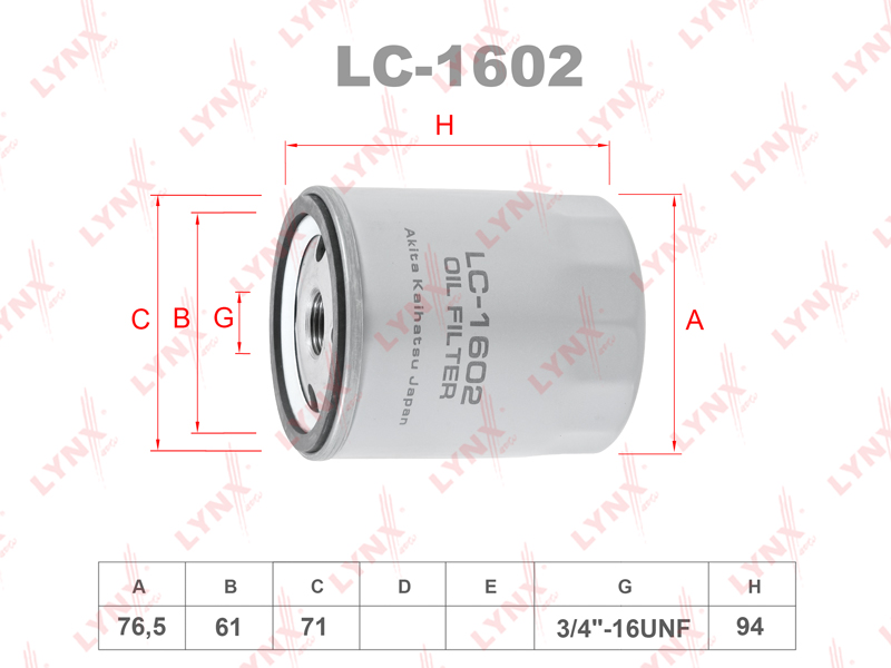 LYNXauto Фильтр масляный LC1602 в Ростове-на-Дону