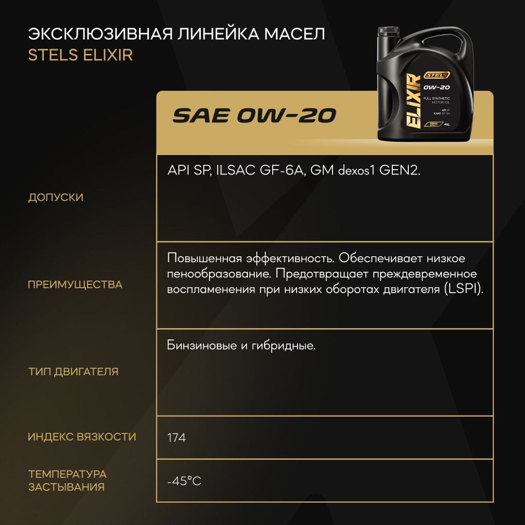 Масло моторное STELS Elixir SAE 0W20 4л в Ростове-на-Дону