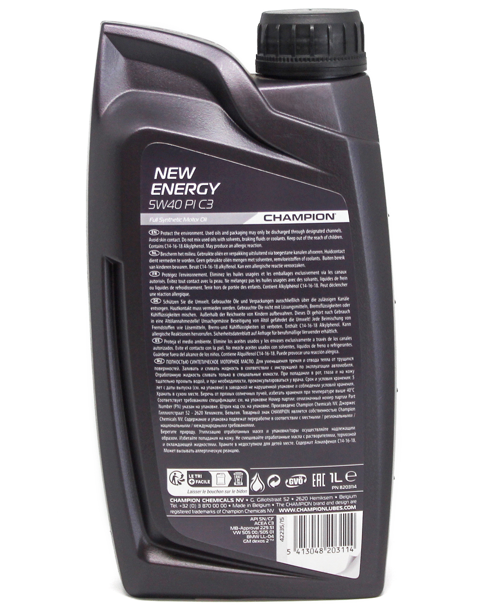 Масло моторное CHAMPION NEW ENERGY 5W40 PI C3 1л в Самаре
