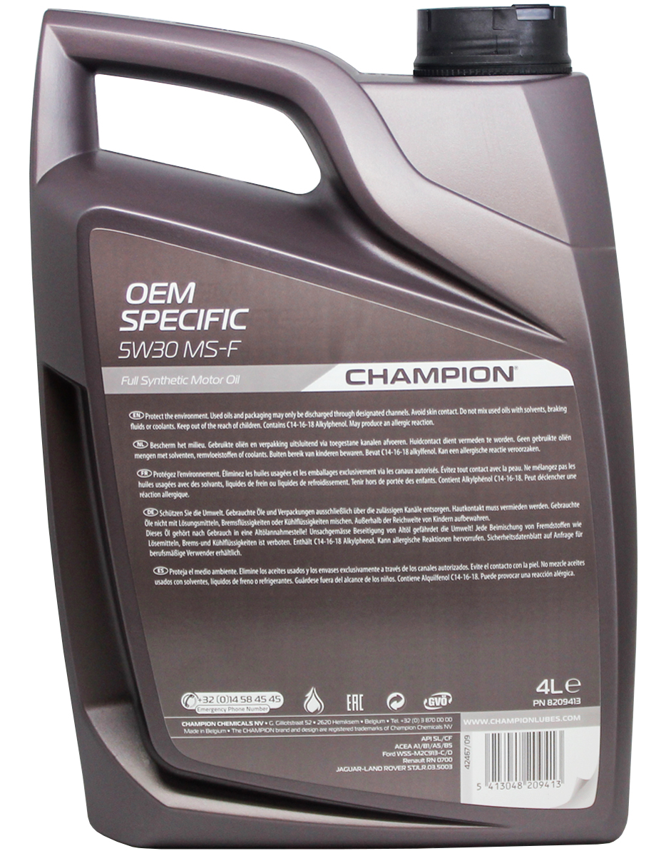 Масло моторное CHAMPION OEM SPECIFIC 5W30 MS-F 4л в Самаре