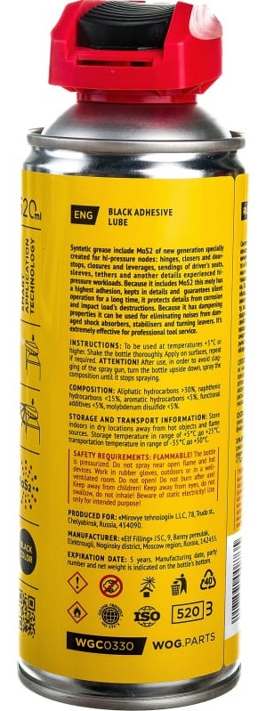 Смазка проникающая адгезионная с дисульфидом молибдена WOG WGC0330 аэрозоль 520мл в Шахтах