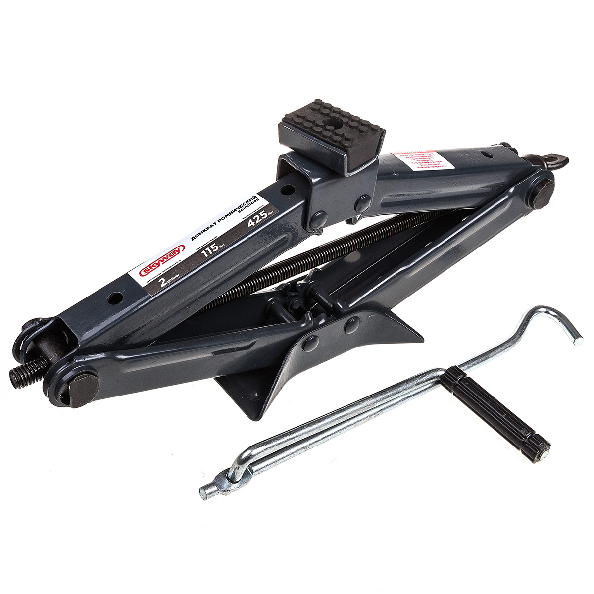 Домкрат механический ромбический 2т h115-425мм SKYWAY с резиновой опорной частью.