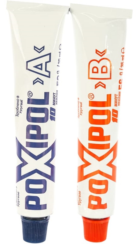 Двухкомпонентный эпоксидный клей общего назначения, имеет металлический цвет.