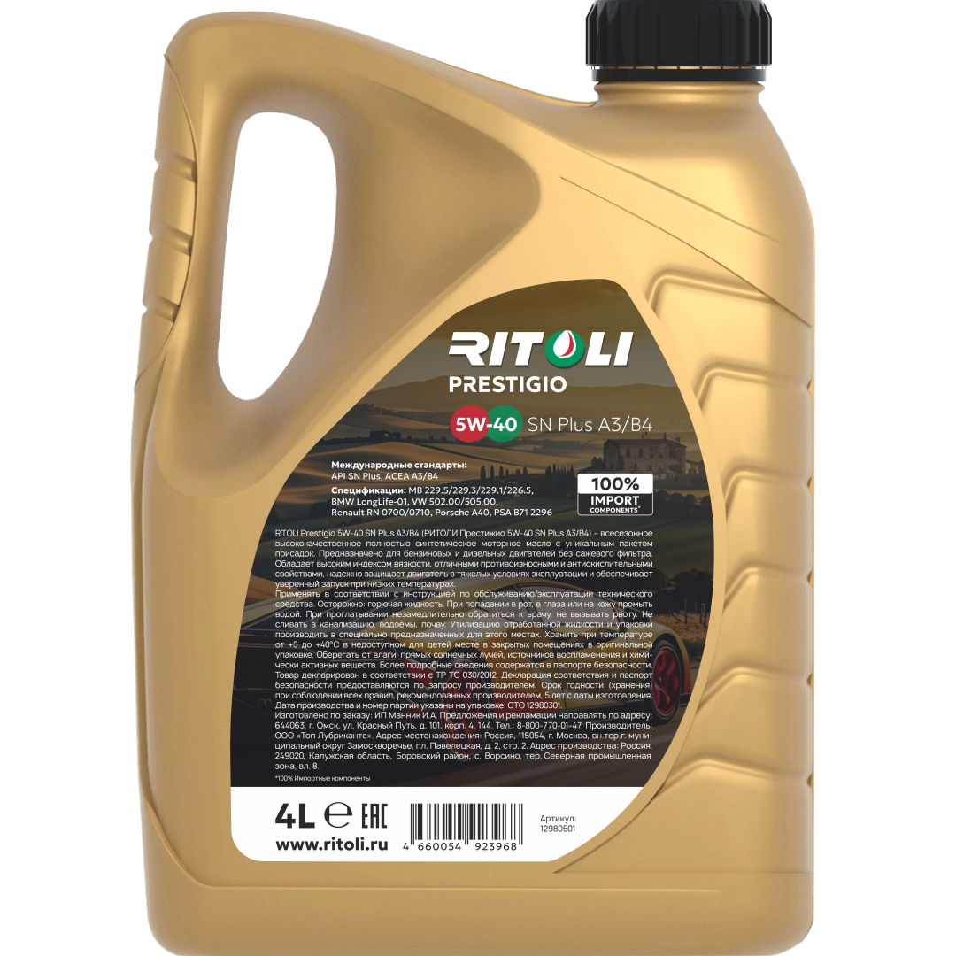 Масло моторное RITOLI Prestigio 5W40 SN Plus A3/B4 4л в Воронеже