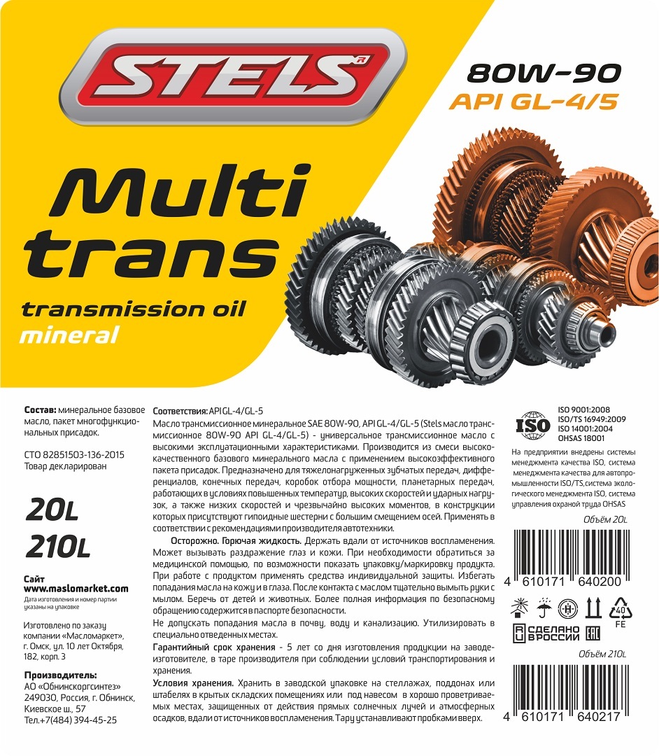 Масло трансмиссионное STELS Multitrans 80w-90 GL-4/5 1л розлив из бочки