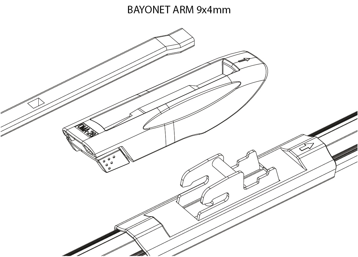 Адаптер для щёток стеклоочистителя OSAWA. Тип крепления - BAYONET ARM 9x4mm.