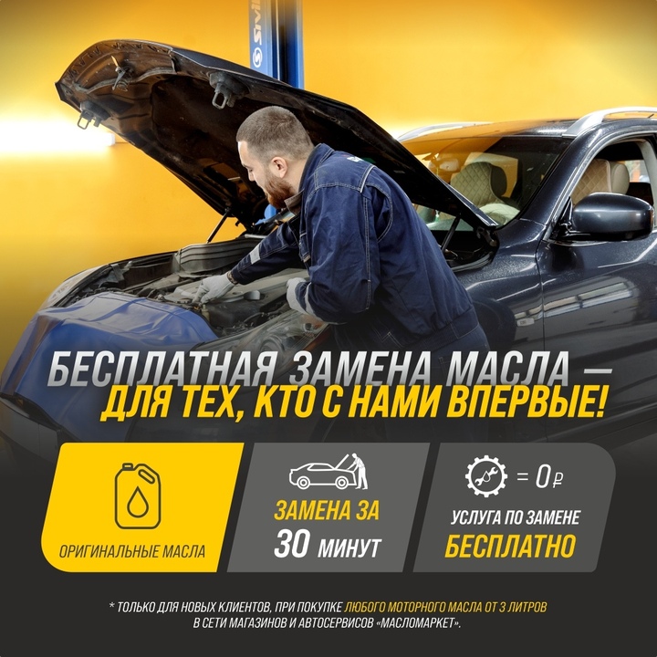 с 06.03.2025 по 31.07.2026Бесплатная замена масла всем новым клиентам!